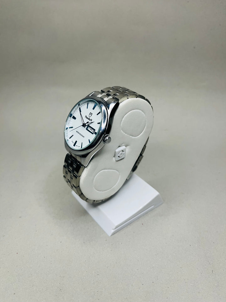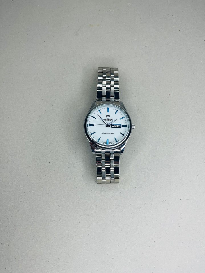 The Nuodun Silver Watch combines elegance and durability for the modern gentleman. Crafted with a premium stainless steel body and a sleek silver finish, this watch delivers a timeless look suitable for any occasion. Its precision quartz movement ensures accurate timekeeping, while the refined design adds a touch of sophistication to your style. Perfect for both formal and everyday wear, it’s a true statement of luxury and confidence.
